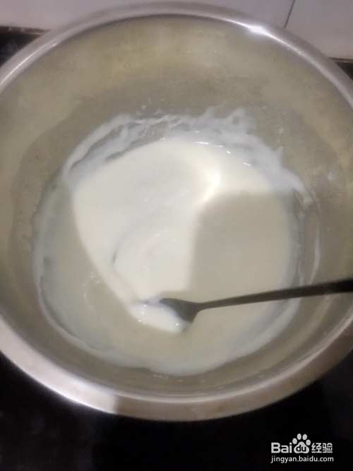 40g淀粉,220g牛奶,两勺炼乳,搅匀,再上炉低温,边烧边搅拌,直到粘稠