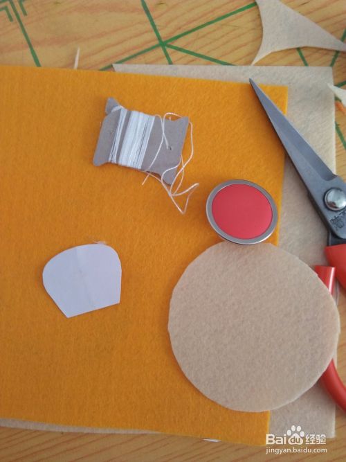 我们先要准备好自己喜欢的不织布,剪刀,一个扣子,一把热熔胶枪,针线包,花瓣的图样。