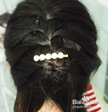 在发辫尾部夹上一个漂亮的珍珠发卡