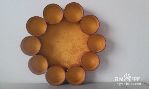 简单的来介绍一下,这个糖果圈的意义。你现在所看到的糖果圈成品图,它的外表是采用了十个胶带圈子结成的中间一个大花瓣。代表着一个大家庭,在新的一年里,祝愿大家,十全十美,红红火火,团团圆圆。外包装采用了红色,吉祥如意,内部采用了金黄色,代表着金玉满堂。