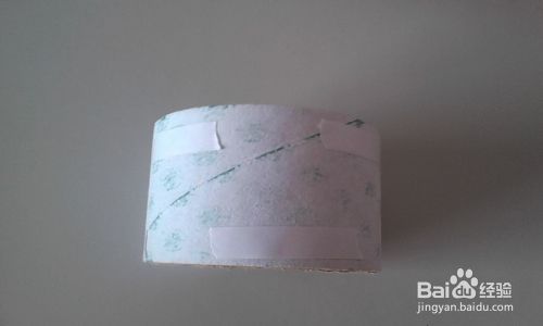 把胶带圈上下高出来的包装纸部分,折出很多个褶子,放在胶带的圈子里面,如图所示;