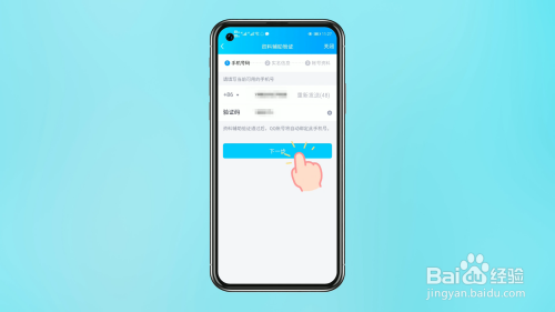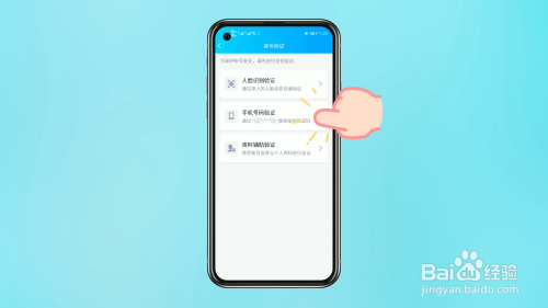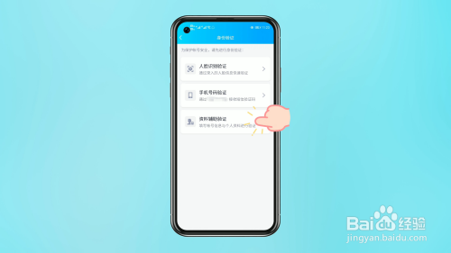 在身份验证界面,点击【资料辅助验证】,填写手机号码和验证码,点击【下一步】