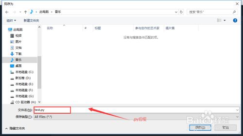 使用快捷键“Ctrl”+"s",先将文件保存成.py后缀的文件,如下图显示,“文件 名”+“.py”后缀