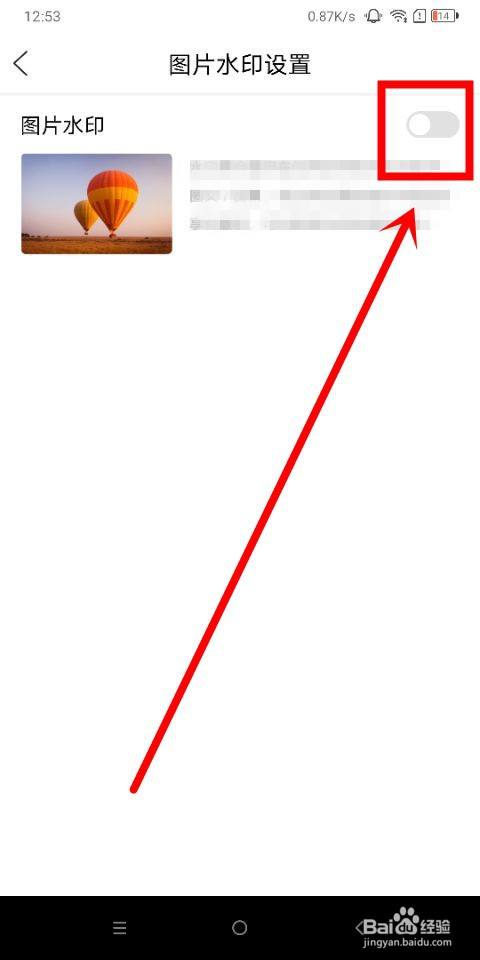 6.在图片水印设置页面中点击开关按钮将其关闭。
