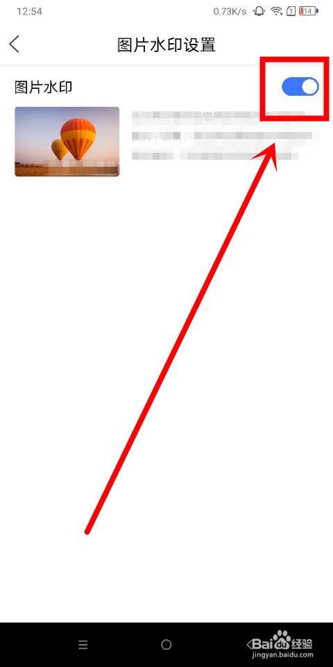 5.在图片水印设置页面中点击开关按钮将其打开。
