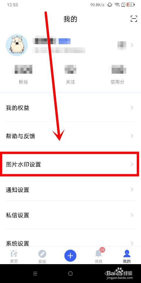 进入到我的这个页面中之后,在该页面中我们找到图片水印设置这个选项,点击进入。