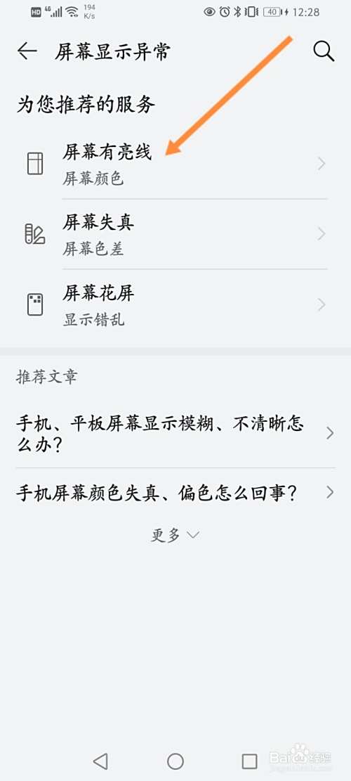 选择屏幕是否有亮线即可。