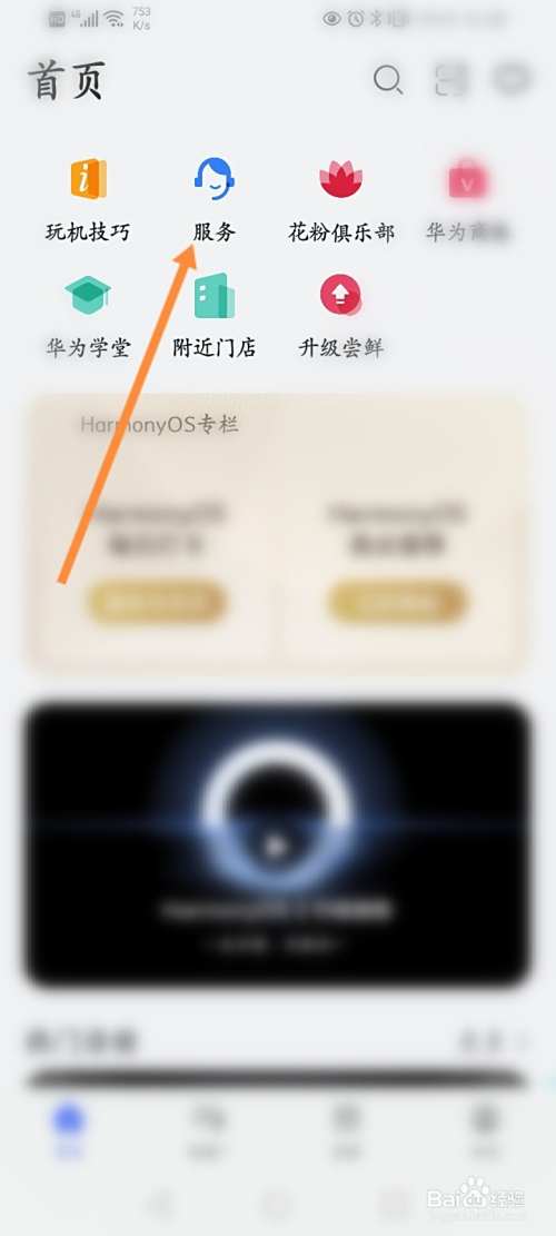打开我的华为,点击上面的服务选项。
