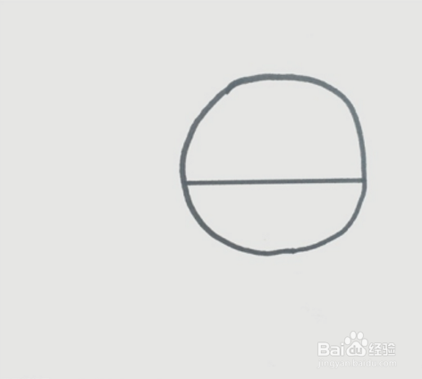 首先,在纸上画一个圆,在圆的中下边位置画一条笔直的横线把圆分成上下两半。