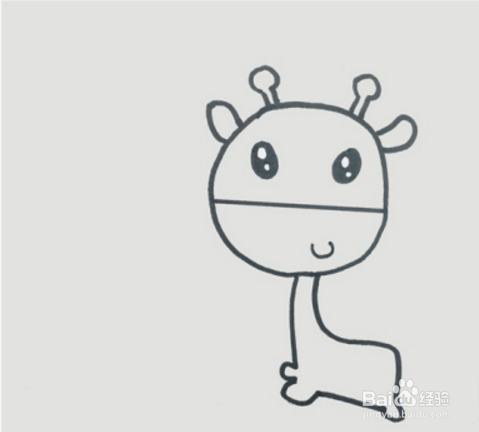 向下画出小鹿细长的脖子和小小的身体,画出短短的四肢。