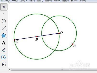 作圆。选中点D和点O,菜单“构造”中选择“以圆心和圆周上的点绘圆”。