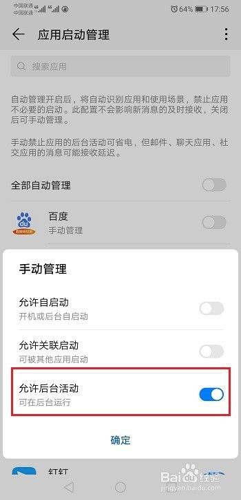 第五步点击开启允许后台活动项,就成功设置了应用后台运行,可以进行自动管理,也是允许应用后台运行的,如下图所示: