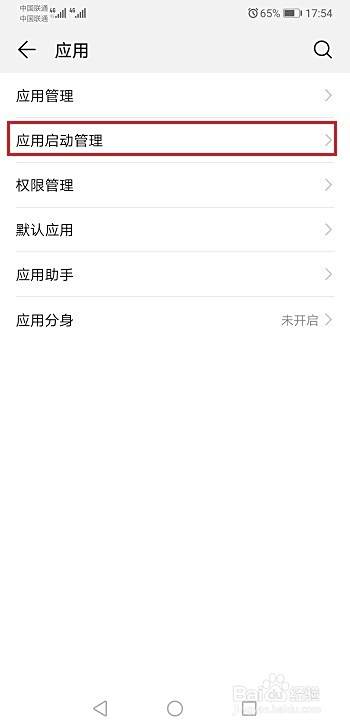 第二步进去手机设置之后,点击应用->应用启动管理,如下图所示: