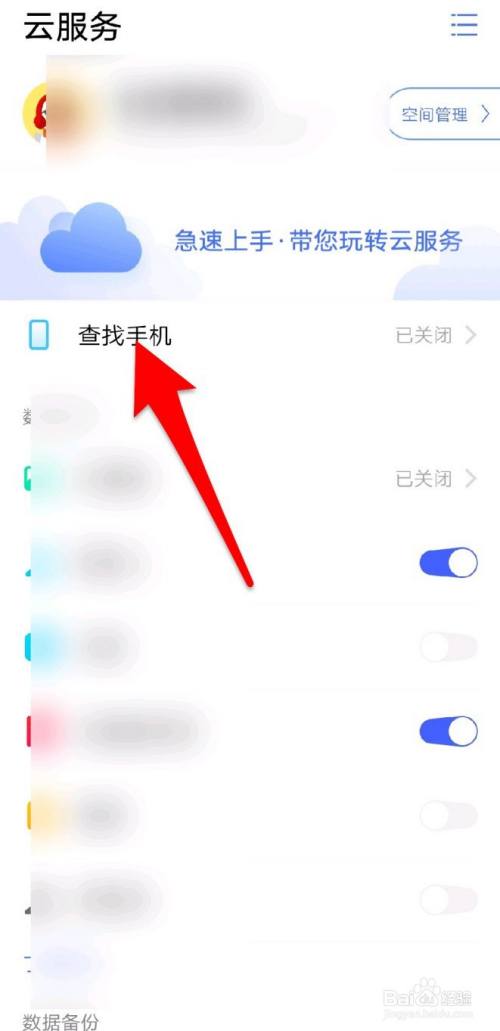 点击备份数据,然后跳转到云服务,在云服务里面点击查找手机 。