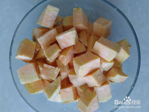 用锅装适量的水,把红薯丁放进去,盖上盖子大火煮沸转小火。