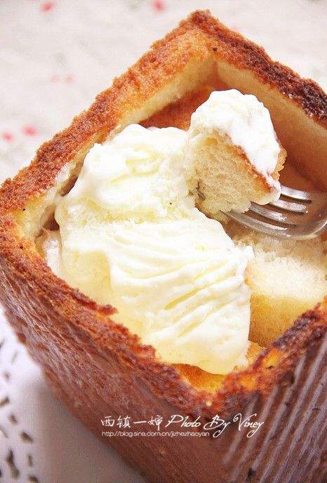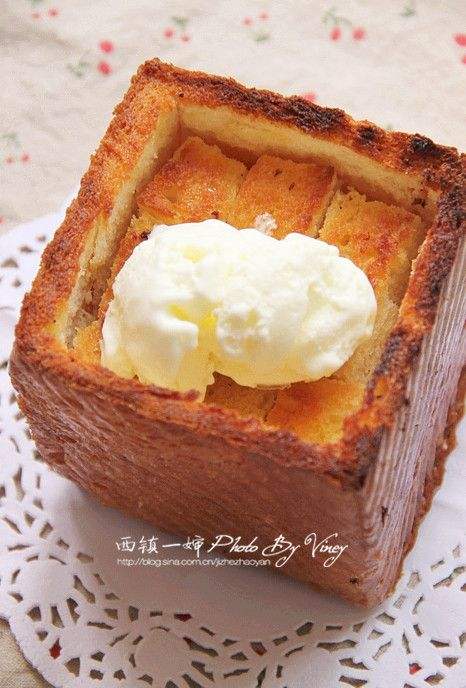 外面是脆脆的,里面是热乎乎的蜂蜜面包块。