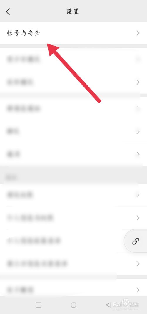 在设置页面中找到账号与安全并点击进入。