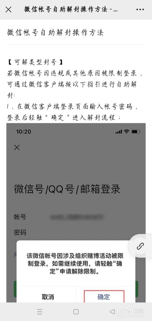 点击解封账号