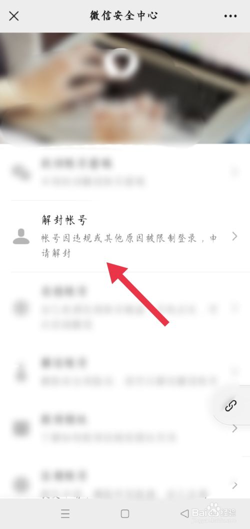 在微信安全中心页面中点击解封账号,按要求操作即可解封微信。