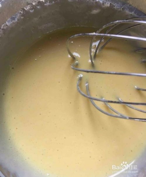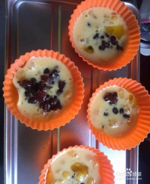 倒入模具中,加入适量的蜜豆