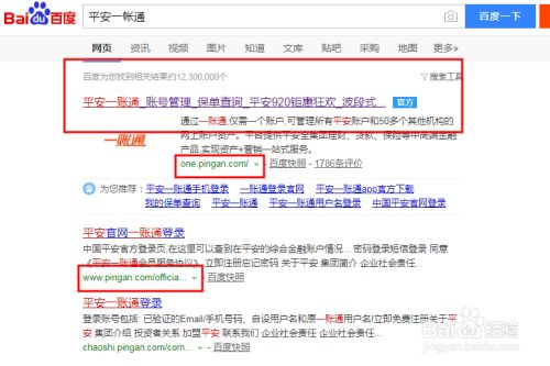 打开百度 搜索 建设银行 或是 直接输入平安一帐通网址https://one.pingan.com.cn