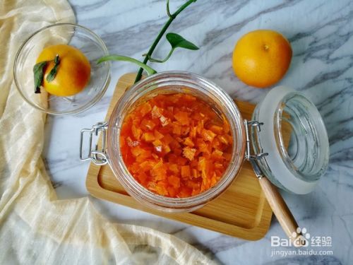 找一个干净的密封罐,底部铺上一层橙皮丁