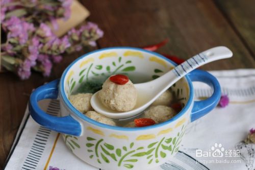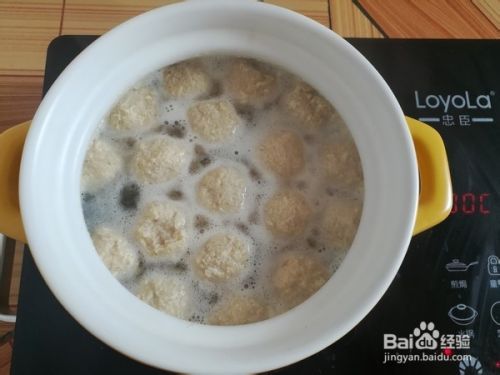 丸子煮熟以后会浮到水面上,把浮沫舀掉