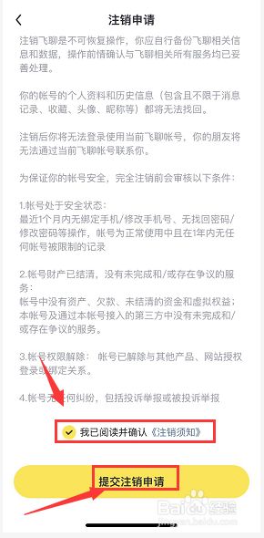 进入注销界面,勾选同意协议,点击提交注销申请,如下图所示