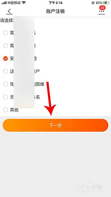 选择要注销的原因勾勒,点击下一步,阅读注销风险,点击同意注销即可。
