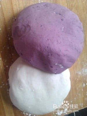 紫薯面团过程同上。因为紫薯比较干,不会像芋头一样出水,大家在做的时候,适量加一点点水,慢慢少量的加。 我是揉了很长时间才成的团,中途也额外加了一点点木薯粉,木薯粉和芋头的比例是1:2.5-3。