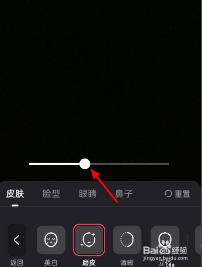 点击【磨皮】,调节滑块,这样就设置美颜成功了。