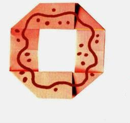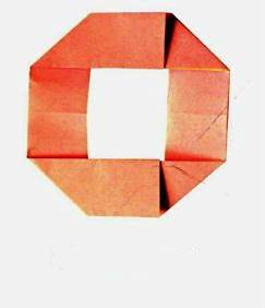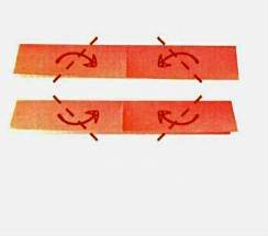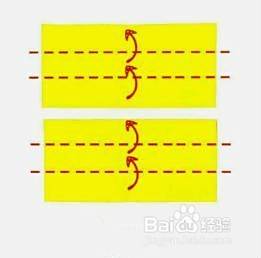 折成长方形条纸后,再沿着谷线位置折叠起,如下图