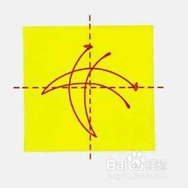 取一张双色彩纸,沿谷线位置折叠,再打开在纸上留上折痕,如下图