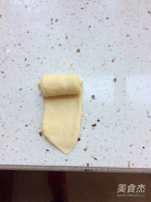 9折好的面团如图,盖上保鲜膜再松弛五分钟