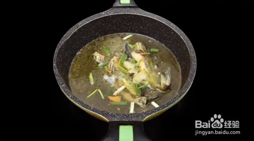 锅中倒入适量油烧热后先下姜放入鱼煎制2-3分钟(中间需要晃动一下鱼,防止粘底,翻一次身),昂刺鱼肉嫩,不宜时间太久