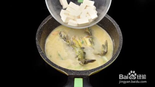 见汤变白后倒入准备好的豆腐,调中火再煮5分钟