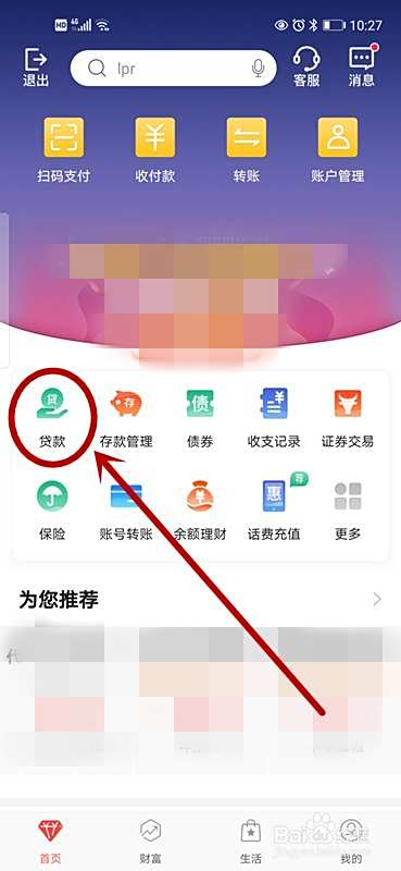 登录后,在首页上点击“贷款”。
