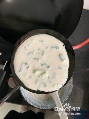 米浆用吃饭的小勺子舀两勺在油饼勺上,抹均匀。不建议倒太多米浆,勺子边缘可以留点。