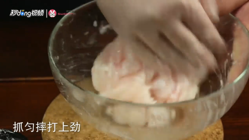 加入干粉盐,抓匀摔打上劲。