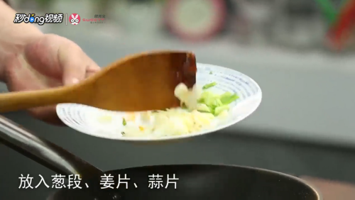 放入葱段,姜片,蒜片。
