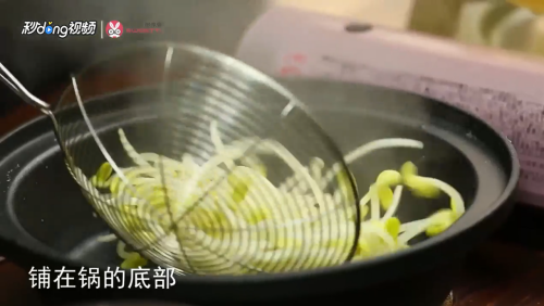 水焯豆芽铺在锅底。