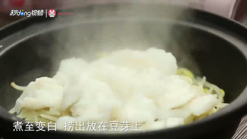 煮制变白捞出放在豆芽上。