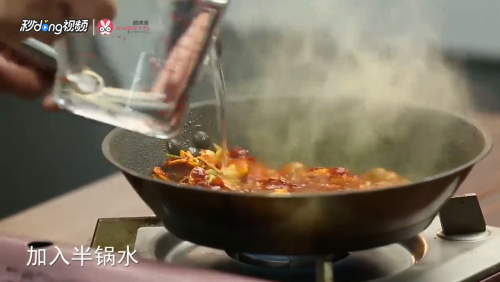 在锅中加一半的水。