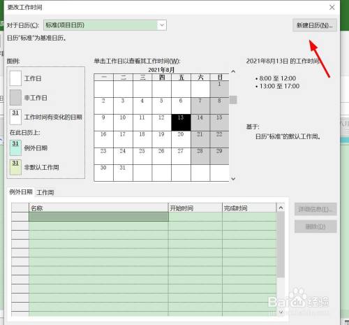 接下来选择右上方的【新建日历】,创建新的【基准日历】。