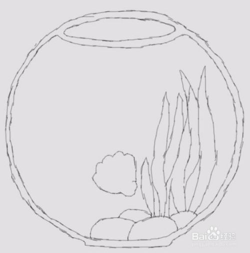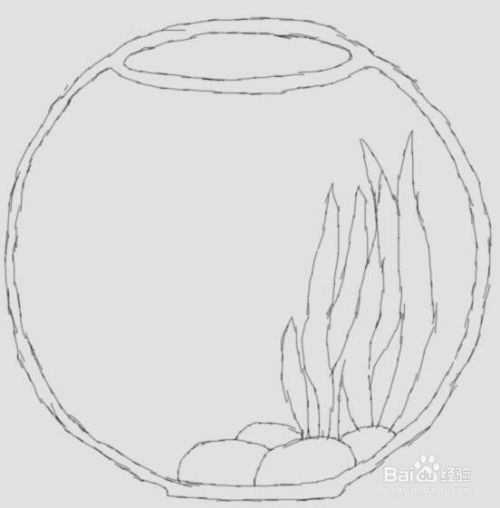 再在石块的上面画出鱼缸里的水草,如图所示: