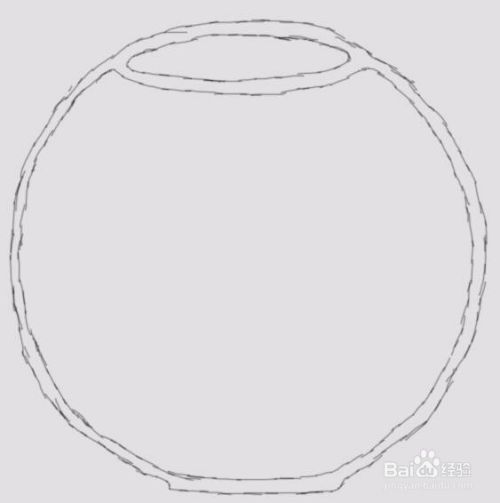 首先我们画出一个椭圆的形状作为鱼缸的外形,如图所示: