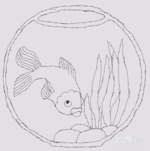 最后我们在画出鱼的尾巴这样简笔画鱼缸我们就画好了,如图所示: