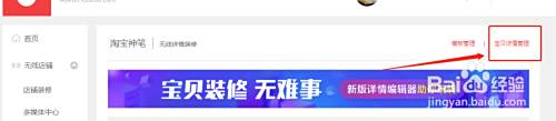 进入立即装修可以看到有个详情页装修,点进去看到宝贝详情管理,然后找到想要添加视频的产品,点编辑即可