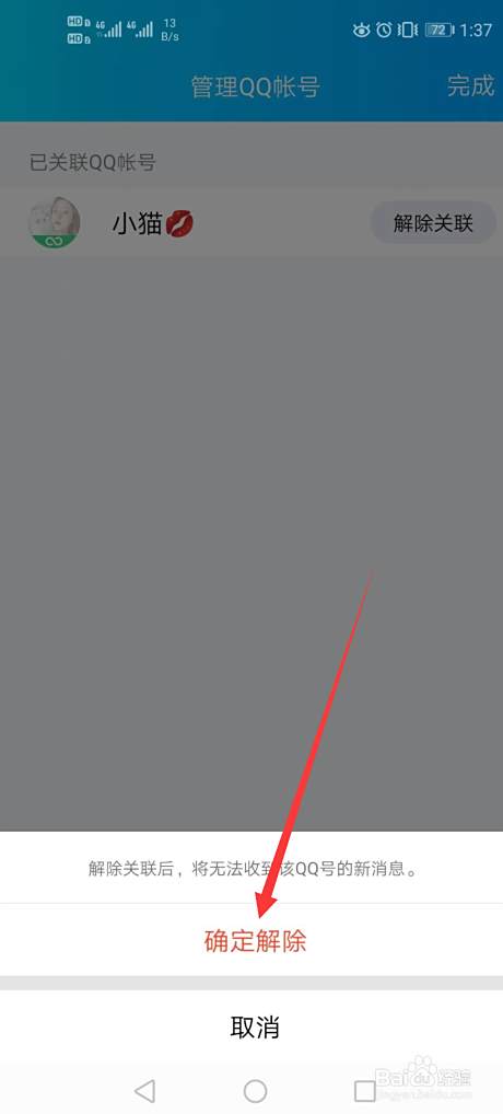 7、点击账号右边的【解除关联】,然后点击【确认解除】即可。