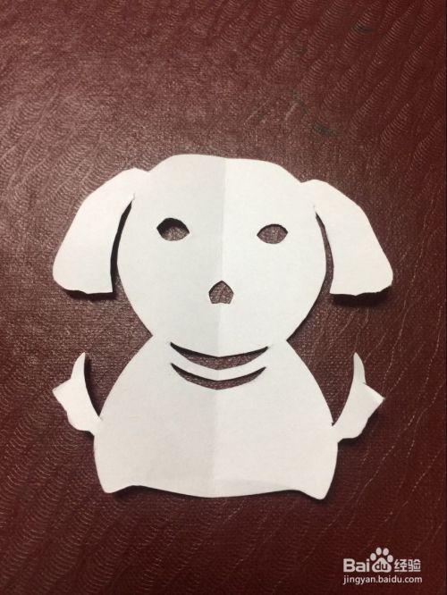 剪好以后展开,把多余的一条尾巴剪掉。这样剪纸小狗狗就完成了。